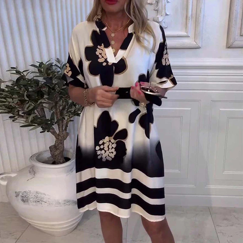 Noir Bloom™| Dress with Artistic Floral Print and Loose Fit