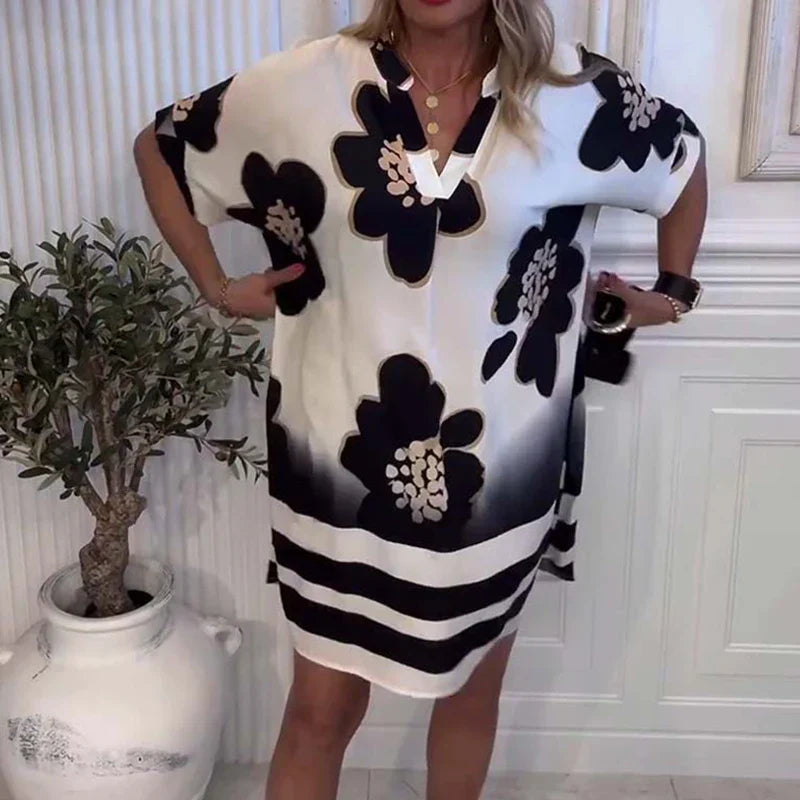 Noir Bloom™ Dress with Artistic Floral Print and Loose Fit – Effortless Elegance in Bloom